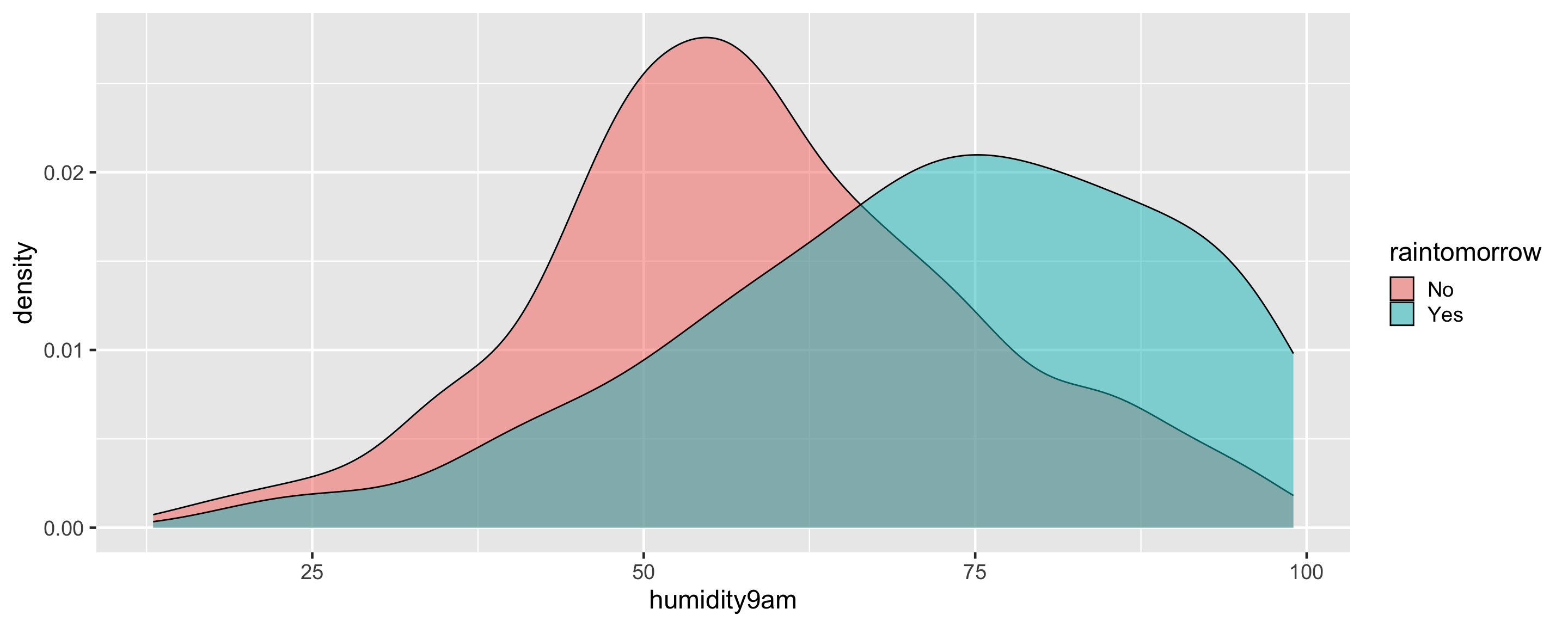 \[\begin{split} X_1 & = \text{ today's humidity at 9am (percent)} \\ \end{split}\]