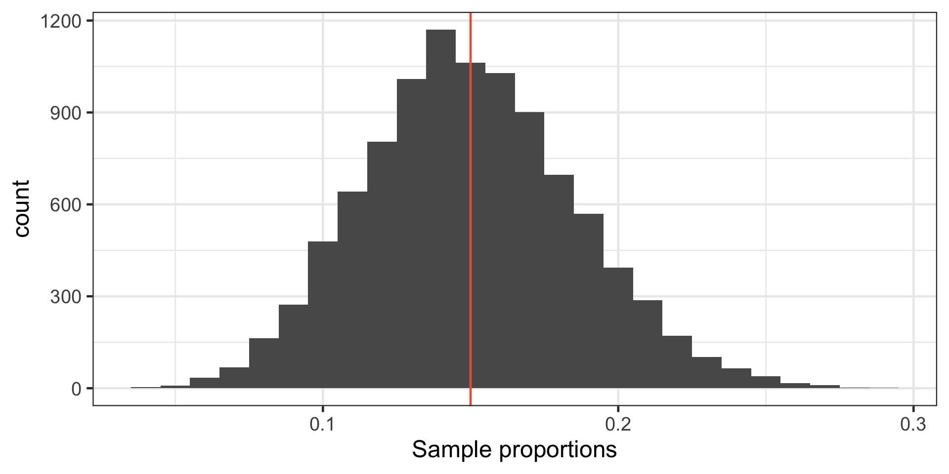 Let \(\pi\) represent the proportion of bike owners on campus then \(\pi =\) 0.15.