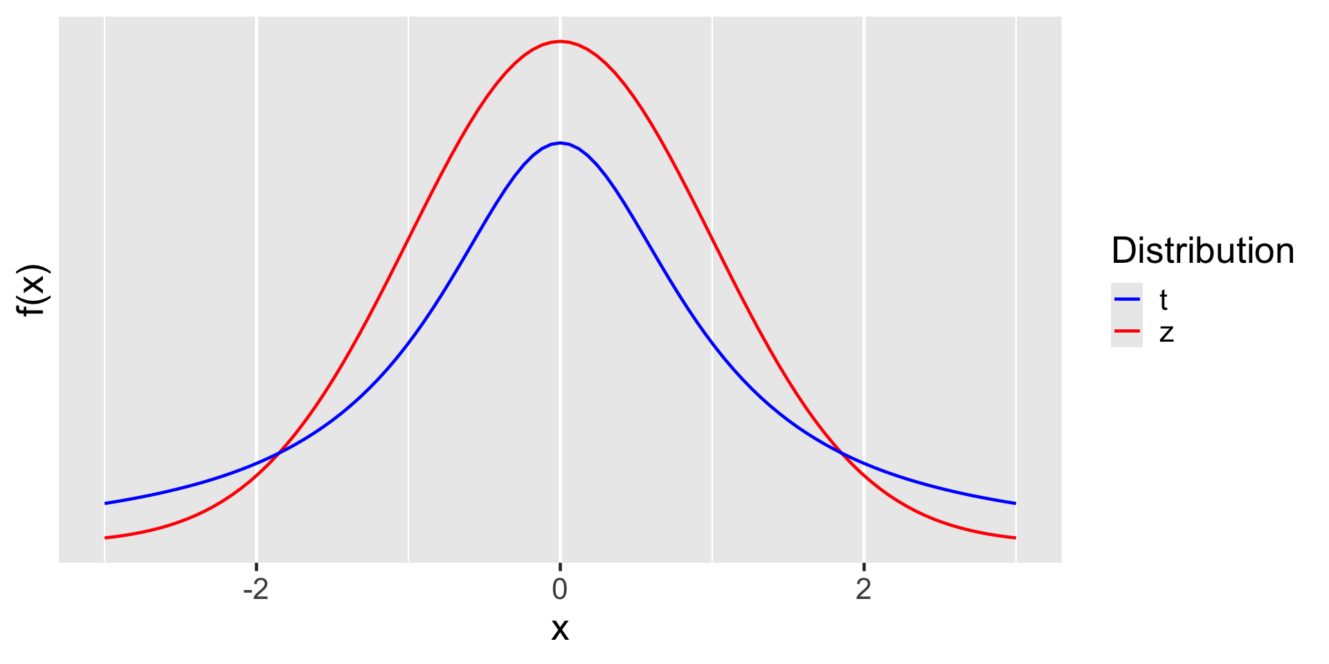 Rather than using Normal distribution, we will now rely on \(t\)-distribution.