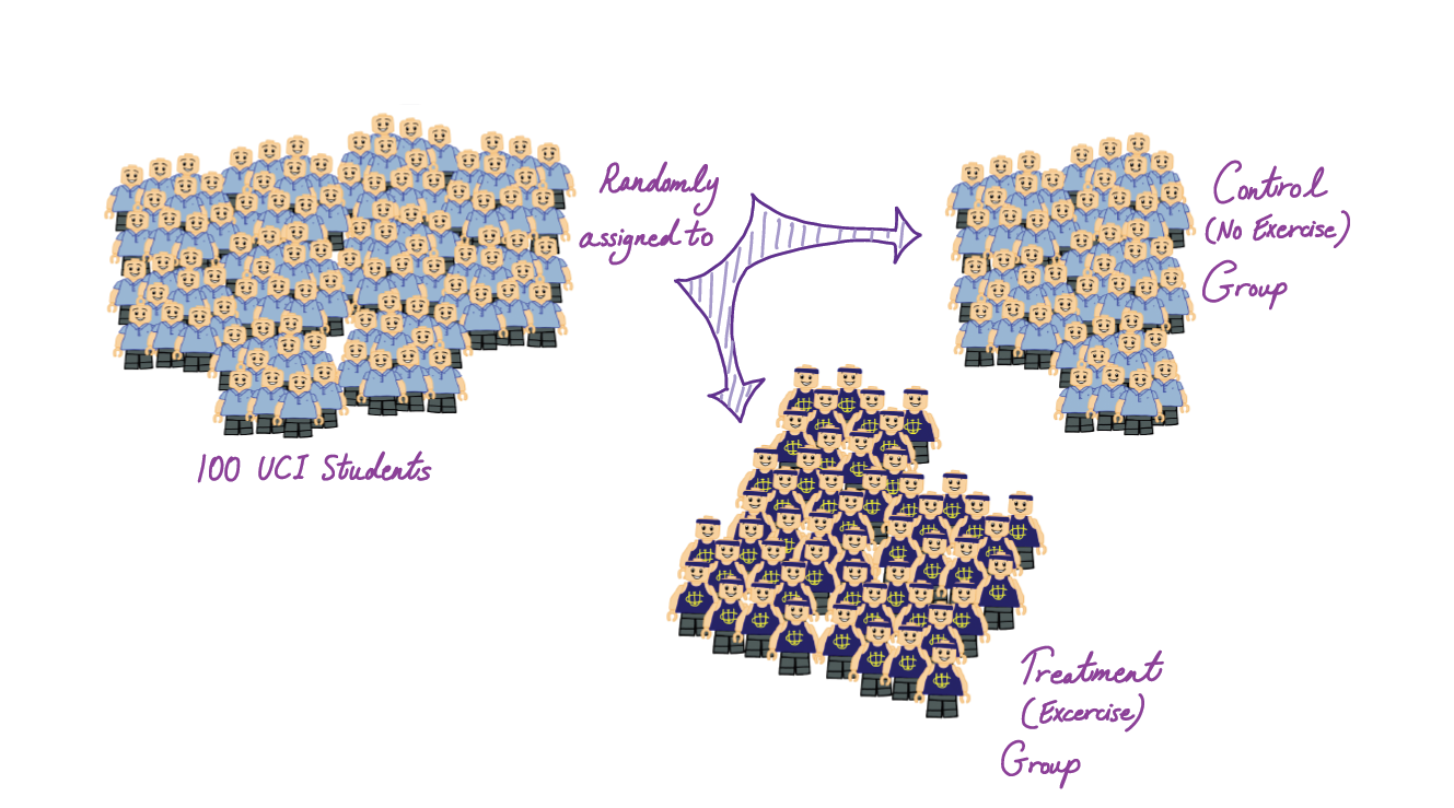 Based on the survey, even if we observe that UCI students who exercise regularly have higher GPA, we cannot conclude that exercising regularly increases GPA.