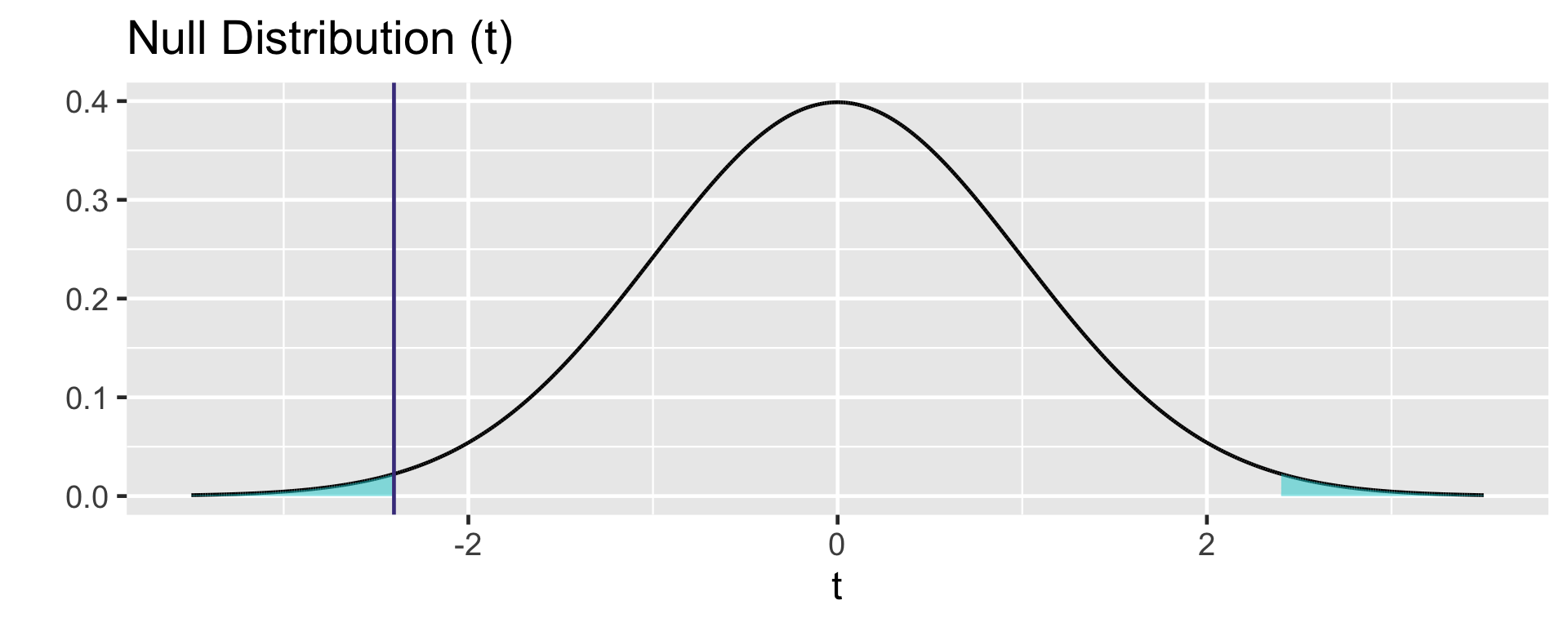 Rather than using Normal distribution, we will now rely on \(t\)-distribution.