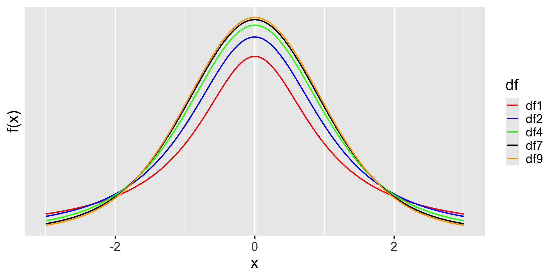 Note that as degrees of freedom increases t-distribution approaches a normal distribution.